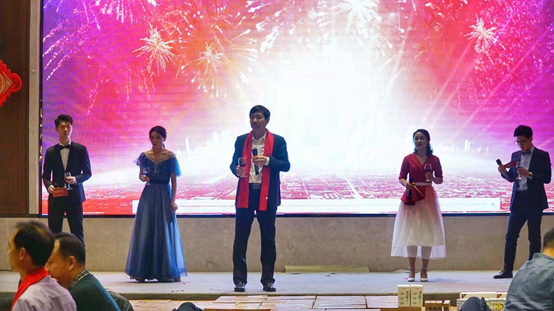 歡快的《好運來》舞蹈,帶來了晚會的開場,筆特紅照耀整個會場。各位領導、同事、合作伙伴歡聚一堂,大家沉浸在歡樂祥和的喜悅中。