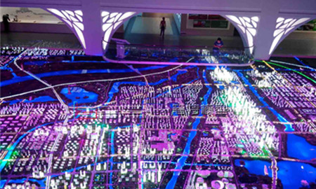 項目名稱:東旭展廳電子沙盤項目簡介:本沙盤盤面使用液晶屏制作,配合水晶建筑體塊;背面安裝液晶拼接屏;頂部安裝投影儀。沙盤內容與背景影片、盤面影片、頂部投影相結合,達到立體、協調展示的視覺效果;